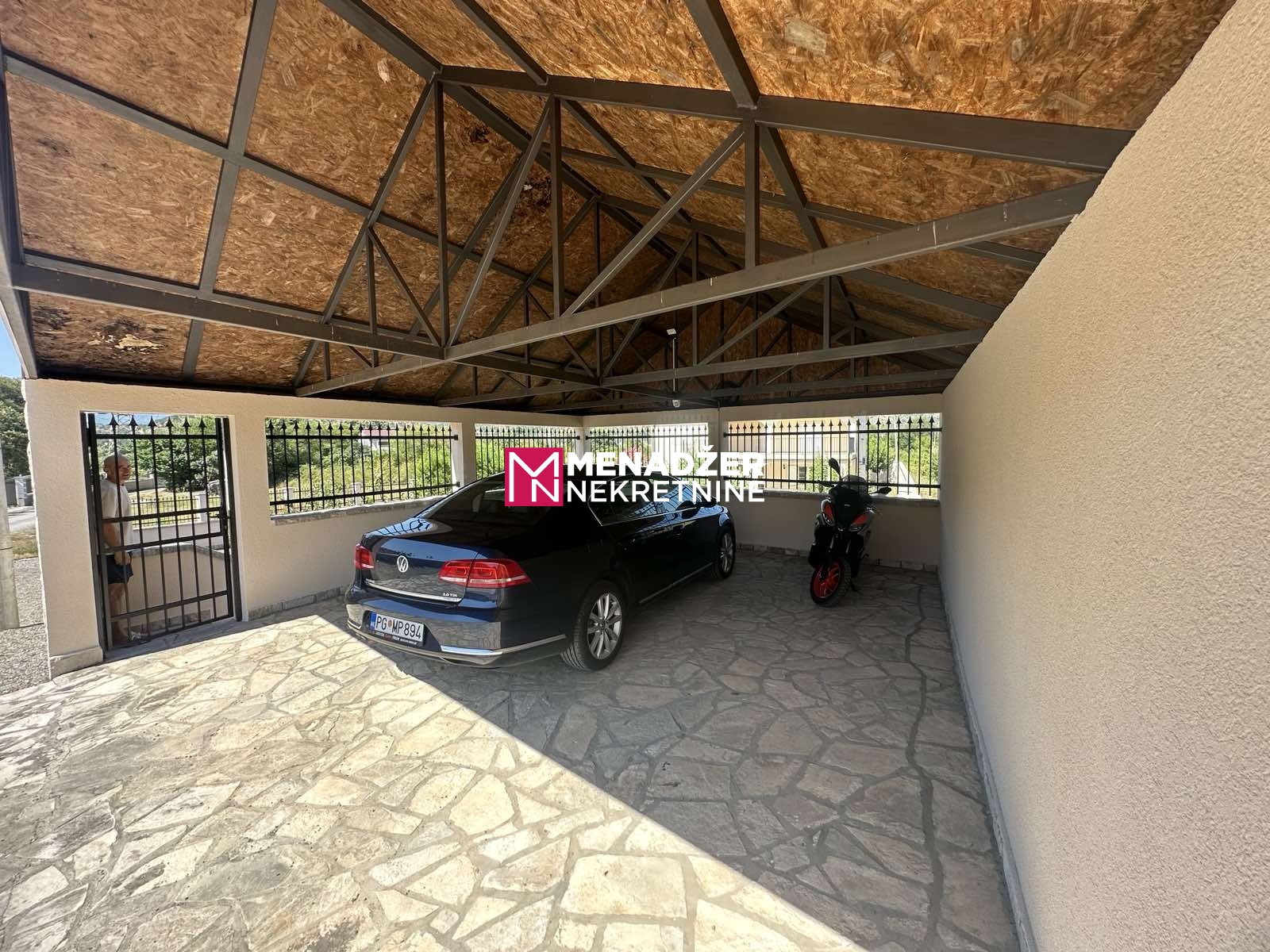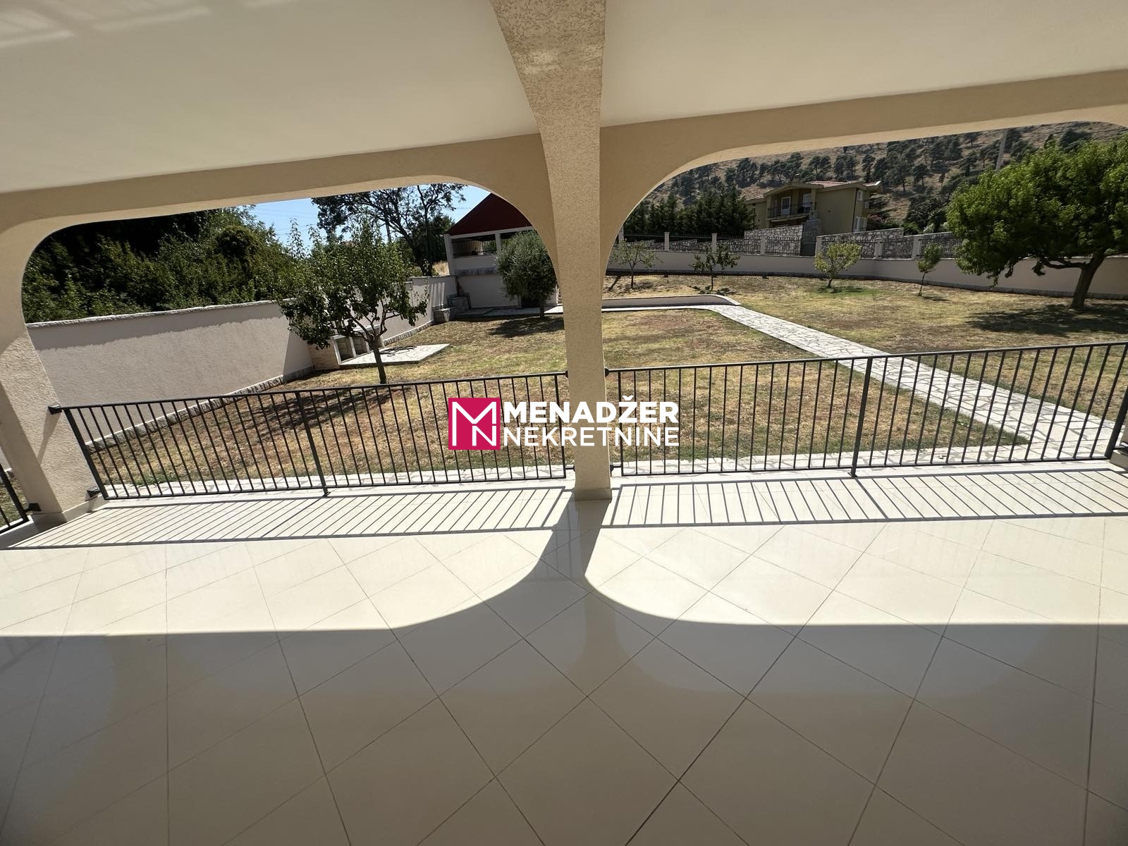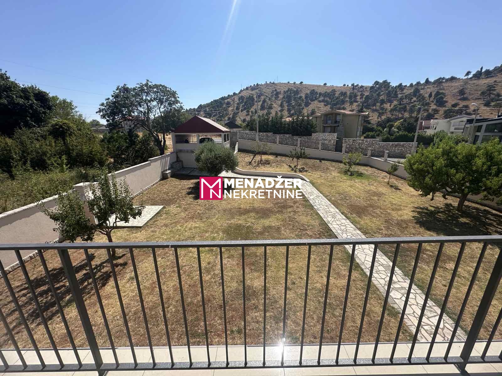 DVORIŠTE JE OGRADjENO BETONSKOM OGRADOM SA KOVANIM NASTAVCIMA..